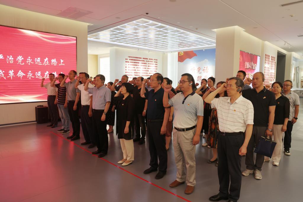 參觀結束后,校黨委書記籍獻平帶領全體黨員干部在鮮紅的黨旗下莊嚴宣誓,重溫入黨誓詞,感悟初心使命,并提出明確要求。一是要讓心存敬畏、手握戒尺真正成為日常自覺。大家要時刻牢記黨員身份,把遵規守紀刻印在心,內化為言行準則,時刻自省自重、自警自勵,自覺遠離違法違紀行為。二是要始終堅持公心對事。將“公心”作為干事創業前提,正確處理職權與特權、公心與私心的關系,繃緊紀律之弦。三是要防微杜漸,抓早抓小。堅持將紀律規矩挺在前面,把“嚴”字貫穿紀律建設全過程,教育在先、事前提醒,防止“小病”演變成“大過”。四是要直面矛盾、敢于斗爭、積極作為。黨員干部在廉潔上要管的住、在事業上要放得開,能夠在開放大學建設的關鍵時期,擔當作為、干事創業、健康成長。
