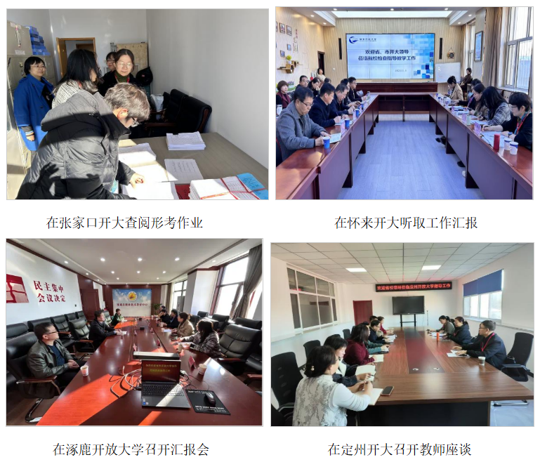 11月4日—14日,根據(jù)《關(guān)于開(kāi)展國(guó)家開(kāi)放大學(xué)2024年綜合教學(xué)檢查工作的通知》文件精神,結(jié)合工作實(shí)際,我校實(shí)地教學(xué)檢查與辦學(xué)評(píng)估同步進(jìn)行,組建了6個(gè)教學(xué)檢查組,校領(lǐng)導(dǎo)劉哲劍、陳軍平、孫智宏帶隊(duì)參與了部分組的實(shí)地檢查,各學(xué)院院長(zhǎng)任組長(zhǎng),教學(xué)、教務(wù)、督導(dǎo)辦管理人員、兼職教學(xué)督導(dǎo)員、教師等共29人參加。此次檢查范圍覆蓋所有市校,并對(duì)懷來(lái)等12所縣級(jí)開(kāi)放大學(xué)及3所學(xué)習(xí)中心進(jìn)行了延伸考察。