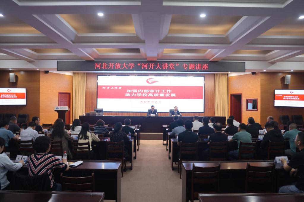 為進一步加強學校內(nèi)部審計工作,發(fā)揮內(nèi)部審計作用,推動學校高質(zhì)量發(fā)展,5月16日,我校在智學樓四樓終身教育大講堂開展“河開大講堂”專題講座活動,邀請河北經(jīng)貿(mào)大學審計處處長周艷平作專題報告。黨委副書記、校長田學斌出席活動并講話,黨委副書記劉哲劍主持活動。黨委常委、副校長王琴,黨委常委、副校長孫智宏出席,全體中層及以上干部,黨政辦公室(審計處)審計科全體成員,經(jīng)濟管理學院部分教師參加活動。