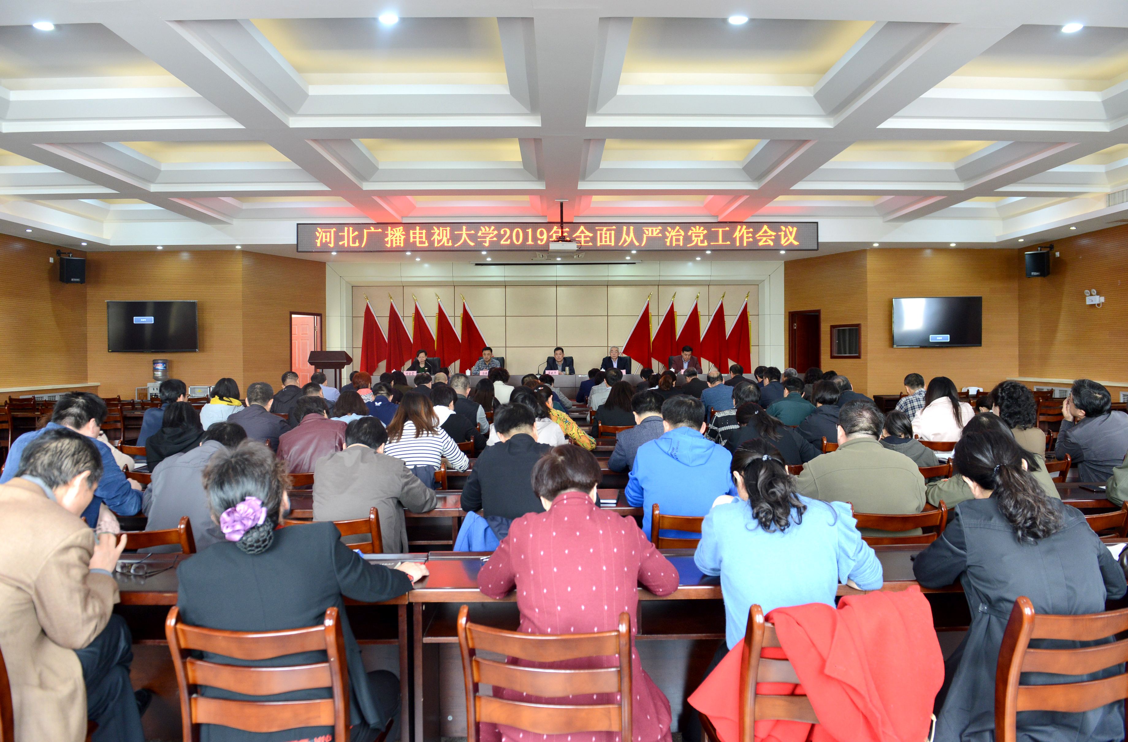 學校黨委書記籍獻平對學校2018年全面從嚴治黨工作開展情況進行了回顧并指出存在問題;對扎實做好2019年全面從嚴治黨工作進行了安排部署并提出具體要求,他指出,2019年是新中國成立70周年,是深入貫徹落實全國、全省教育大會精神的開局之年,是我校建校40周年。他強調要貫徹落實省委、省委教育工委關于全面從嚴治黨的工作要求,切實加強黨的領導和黨的建設,突出政治建設,各級黨組織要擔負好管黨治黨主體責任,紀檢監察部門要充分履行好監督責任,深入推進全面從嚴治黨向縱深發展,以新使命、新擔當、新作為,推動學校整體工作邁上新臺階,以良好的精神面貌迎接黨代會的召開,以扎實的工作推進河北開放大學建設。