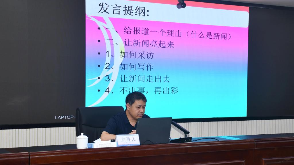 宋國(guó)強(qiáng)結(jié)合多年的新聞寫(xiě)作經(jīng)驗(yàn),從“新聞的本質(zhì)是什么、新聞的追求是什么、新聞亮點(diǎn)怎么找、新聞標(biāo)題怎么寫(xiě)”等方面,對(duì)新聞基本知識(shí)、線索捕捉、寫(xiě)作思路、結(jié)構(gòu)把握、語(yǔ)言潤(rùn)色等多個(gè)方面作出了深入淺出的講解,還聯(lián)系眾多報(bào)道實(shí)例和工作實(shí)踐,與大家分享了自己多篇獲獎(jiǎng)作品的創(chuàng)作體會(huì)和心路歷程。