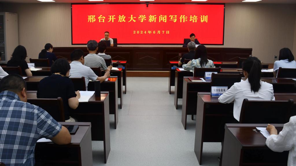 近日,邢臺(tái)開(kāi)放大學(xué)舉辦新聞寫(xiě)作專題培訓(xùn)班,邀請(qǐng)邢臺(tái)日?qǐng)?bào)社新媒體發(fā)布中心主任、“我看邢”“掌上邢臺(tái)”客戶端負(fù)責(zé)人張軍昱和《邢臺(tái)日?qǐng)?bào)》編委、編輯出版部主任、高級(jí)記者宋國(guó)強(qiáng)到校授課。黨委書(shū)記宗召偉、校長(zhǎng)劉彥君、黨委副書(shū)記霍秀申、副校長(zhǎng)孫華、全體中層干部、各處室宣傳信息員及青年教師共40多人參加培訓(xùn)。