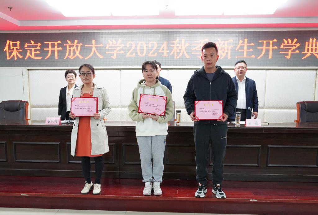 開學典禮在莊嚴高昂的國歌聲中拉開序幕。趙建代表學校向2024年秋季學期加入的新同學表示熱烈的歡迎,并以《逐夢新征程揚帆向未來》為題,從是什么、為什么、學什么和怎么學的角度為大家上了一堂生動精彩的開學第一課。他表示,國家開放大學作為全國辦學規模最大的大學,堅持資源共享、體系聯動,辦學45年來累計為社會培養輸送了2031萬優秀人才,有力支撐了學習型社會建設和終身學習體系構建。保定開放大學作為國家開放大學四級辦學體系中的重要一環,緊緊錨定建設“高水平、有特色、人民滿意、全國一流”開放大學的發展目標,扎實開展各項工作,加快構建一體兩翼、三駕馬車、四化支撐、五大工程的“12345”發展格局,全力為同學們營造良好的辦學環境、提供優質的教學支持服務。他用一個個生動的事例幫助同學們思考接受繼續教育的深層次原因,又幫同學們厘清學習重點,他強調一要學理論,堅定理想信念;二要學知識,練就過硬本領;三要學紀律,錘煉優良作風。他勉勵廣大新生處理好“要我學”和“我要學”的關系,不斷增強學習的內生動力,充分利用好碎片化時間,靈活運用互聯網、手機等現代信息技術手段,在有限的時間內最大限度地獲取知識、掌握技能;處理好“短期學”和“長期學”的關系,強化終身學習理念,與時俱進,堅持學習,加快優化知識結構;處理好“知識積累”和“消化吸收”的關系,將理論知識與工作實際相結合,真正把所學內容消化吸收,轉化為推動工作、促進發展的強大武器,實現學有所獲,學有所成,努力成長為可堪大用、能擔重任的棟梁之才。
