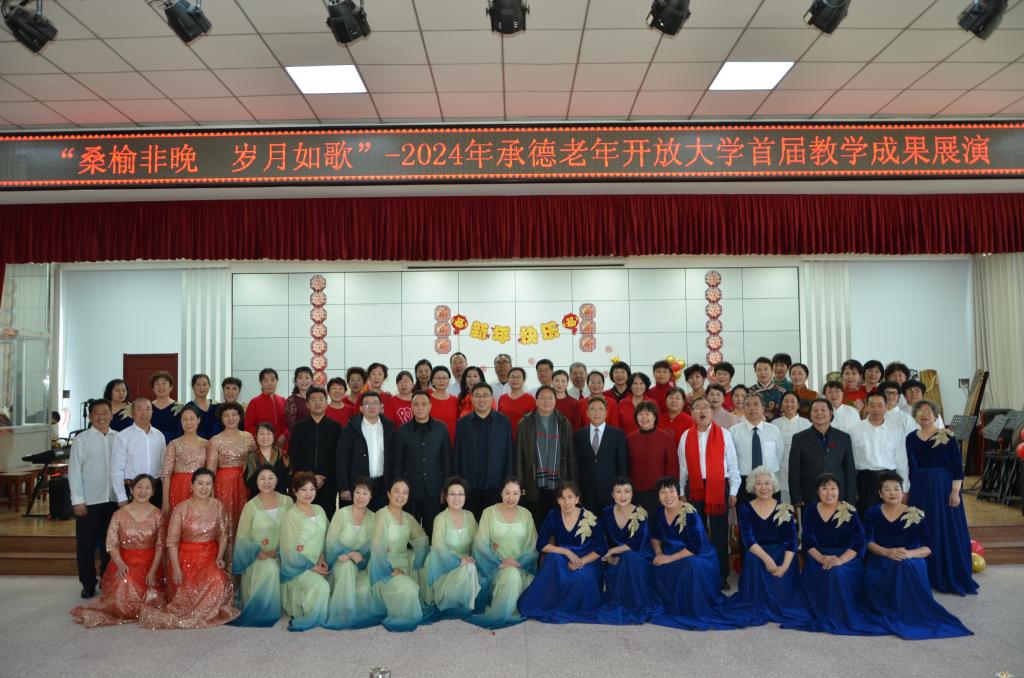 2024年12月30日,承德開放大學“桑榆非晚,歲月如歌”主題老年教育成果展演隆重舉行。活動不僅是對老年學員們一年來學習成果的集中展示,更是對他們積極向上、熱愛生活態度的生動詮釋。此次活動采取現場直播方式進行,直播觀看人次達3500人次,同時邀請到新聞媒體現場報道。
