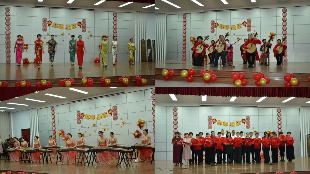 隨后演出活動正式開始,老年合唱團帶來的《春風十萬里》和《我的中國心》。悠揚的歌聲、深情的演繹,不僅唱出了對祖國的熱愛與自豪,更傳遞出對美好生活的向往與追求,贏得了現場觀眾的陣陣掌聲與喝彩。民族舞蹈、旗袍展示姿態翩躚、細膩飄逸,太極拳表演動作流暢、氣勢磅礴,朗誦節目也是此次展演的一大亮點。老年學員們朗誦了《我的老年開放大學》,表達了學員們對學校的支持和熱愛。此外,器樂演奏環節同樣精彩紛呈。古箏、中阮、二胡等傳統樂器的演奏,為觀眾帶來了一場視聽盛宴,展現了老年學員們對多元文化的熱愛與傳承。參加節目的還有老年教育的專業教師,他們的精彩演出贏得了現場一波波熱烈的掌聲。最后,展演活動在詩朗誦《中華頌》中落下帷幕。這首詩以激昂的語調、飽滿的情感,頌揚了中華民族的輝煌歷史與燦爛文化,表達了對祖國未來的美好祝愿。隨著朗誦的結束,現場響起了雷鳴般的掌聲,將活動氣氛推向了高潮。