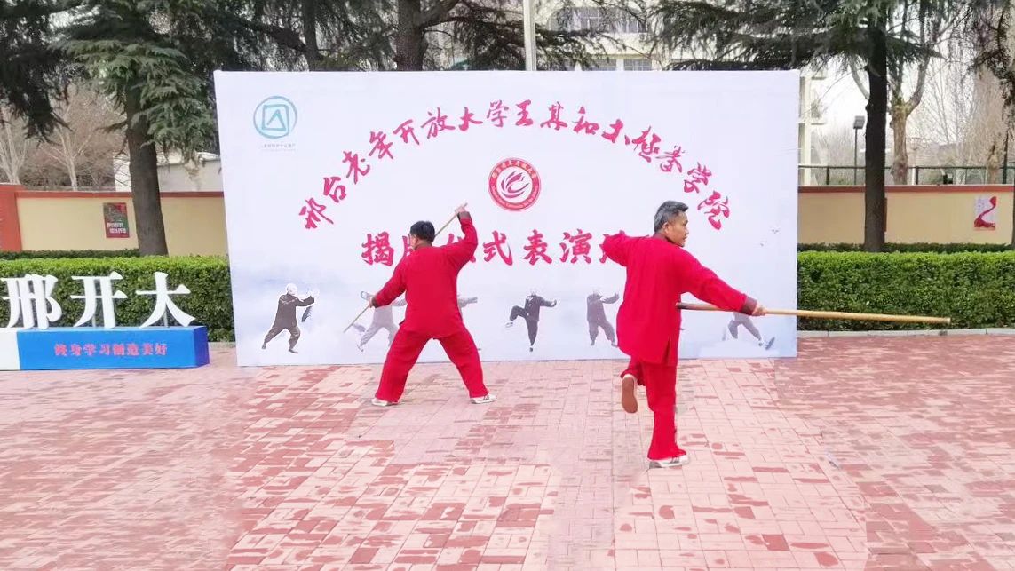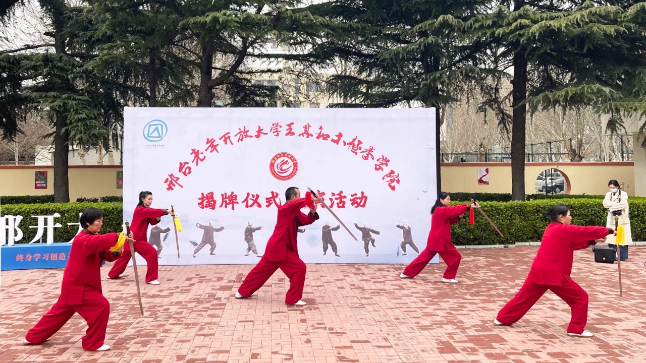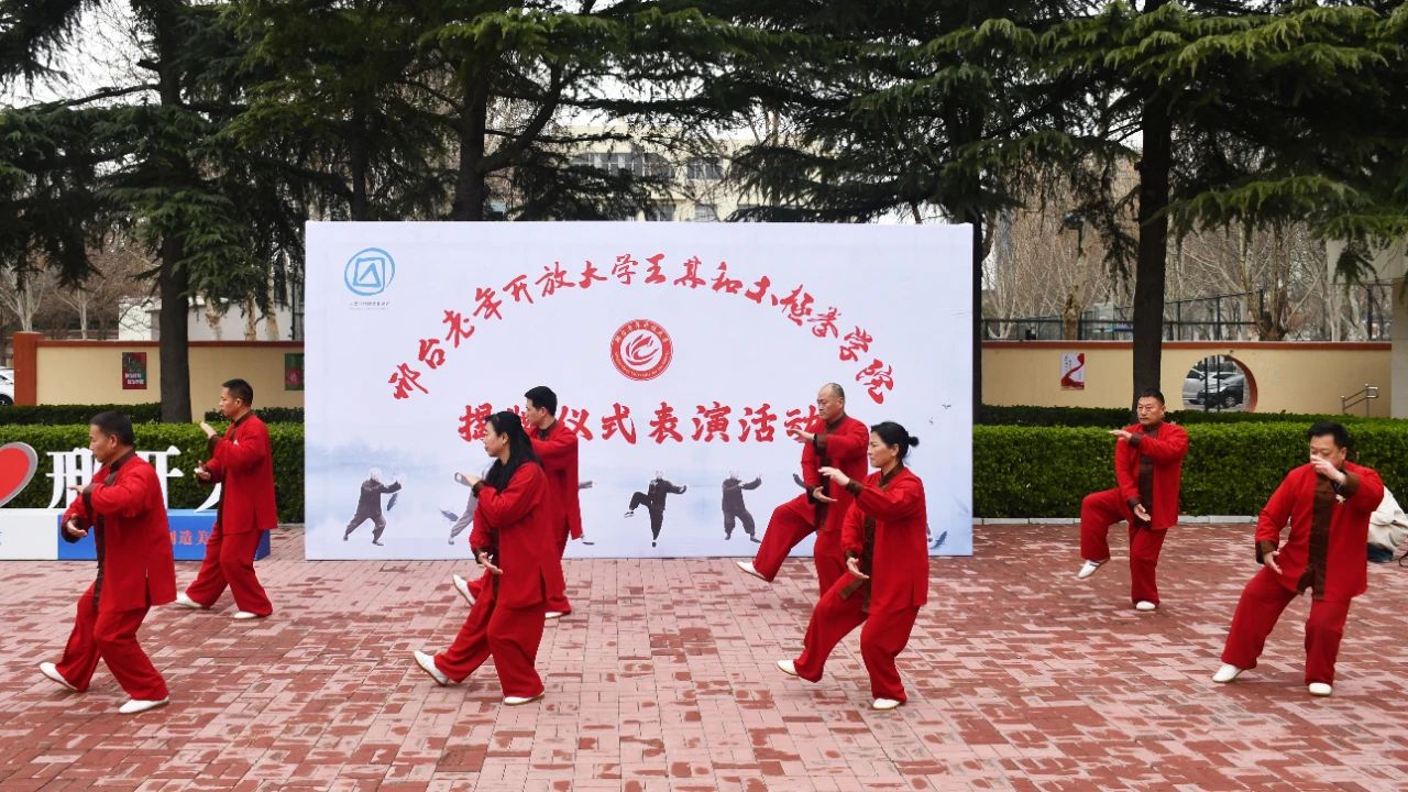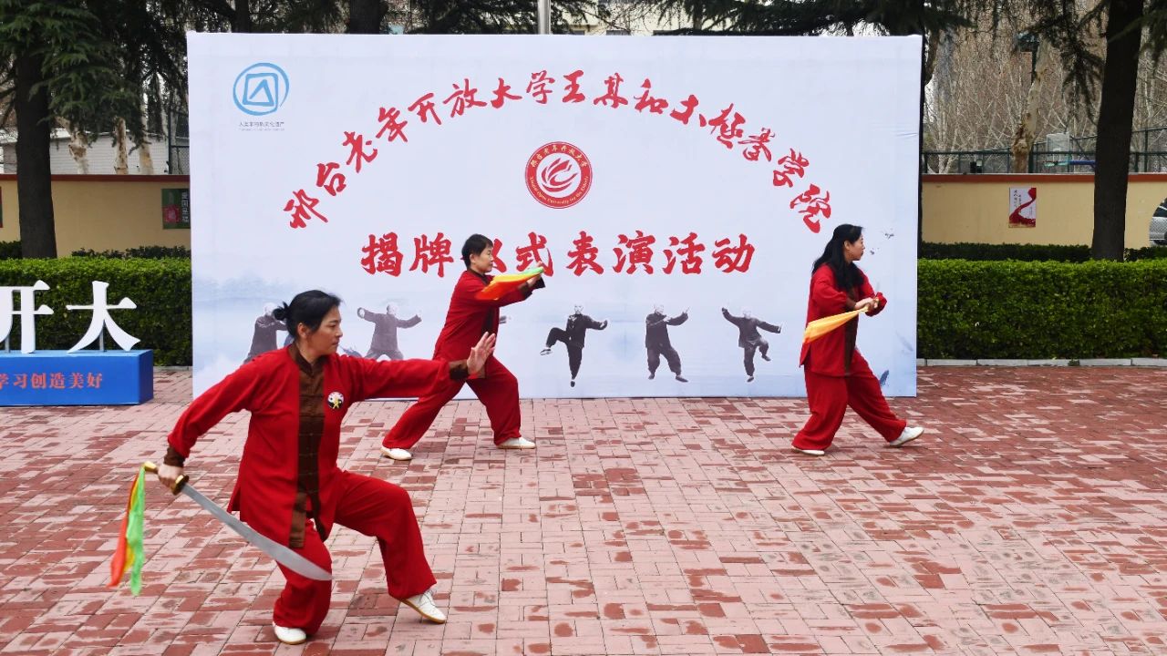 為推動學歷教育與非學歷教育均衡發展,進一步強化老年教育品牌建設,邢臺老年開放大學和河北省王其和太極拳協會合作,成立邢臺老年開放大學王其和太極拳學院,3月15日上午舉辦了揭牌儀式。中國非遺保護協會太極拳專委會副主任、河北省王其和太極拳協會主席檀杏敏,邢臺市委教育工委書記、市教育局黨組書記、局長于京禮,邢臺開放大學黨委書記宗召偉和校長劉彥君出席揭牌儀式,邢臺開放大學領導班子成員、副科級以上干部,以及河北省王其和太極拳協會領導及嘉賓共70余人參加活動。