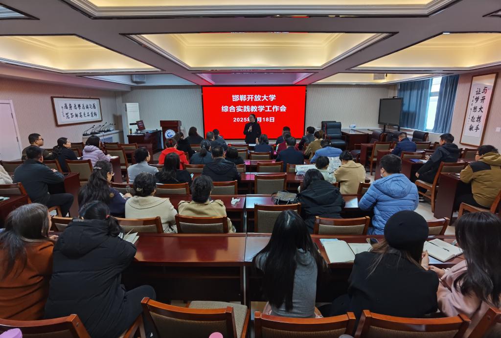 為加強開放教育綜合實踐教學工作,規范綜合實踐教學管理,進一步提高綜合實踐教學質量,邯鄲開放大學于2025年3月18日在智慧教室召開開放教育綜合實踐教學工作會。各縣校、學院、學習中心主管綜合實踐教學工作的領導和管理人員、市校開放教育各專業主管教師及2024年新入職青年教師共60余人參加了會議。