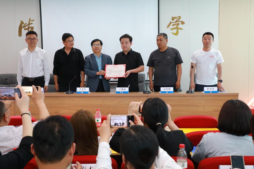 活動現場,涉縣教體局主管領導王喜生向王凱旋教授頒發“書法客座教授”聘書,正式聘請王教授為涉縣開放大學書法教育指導專家。