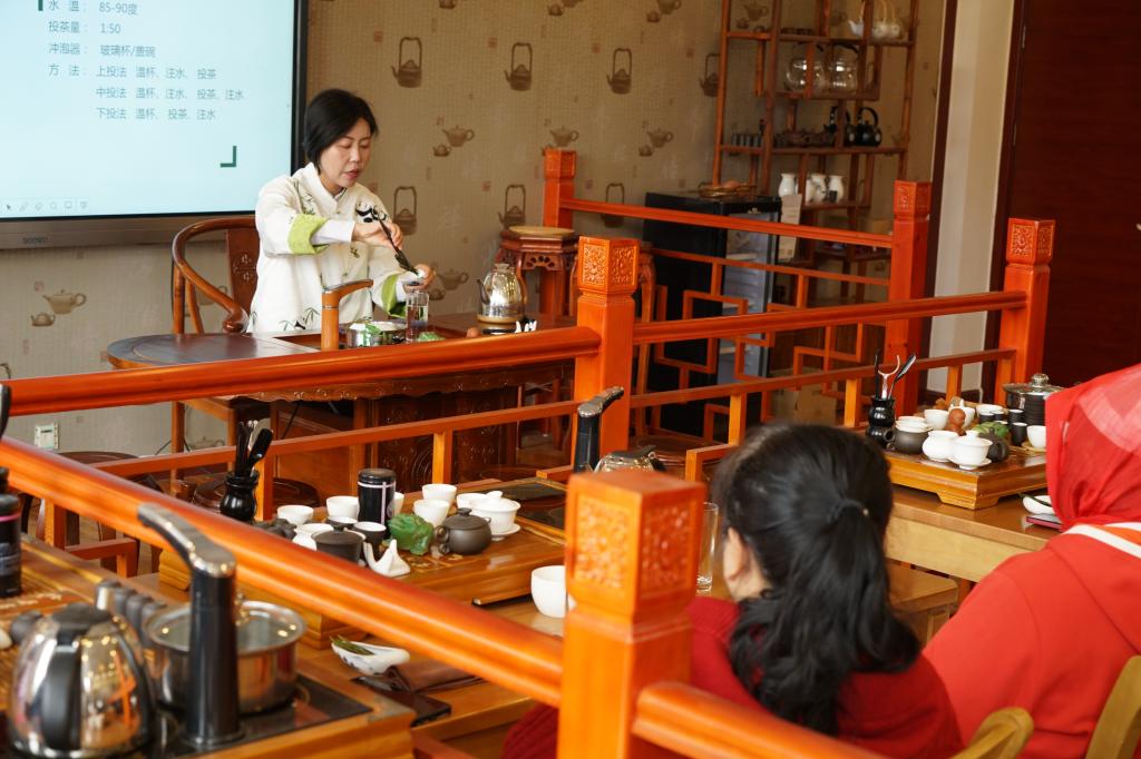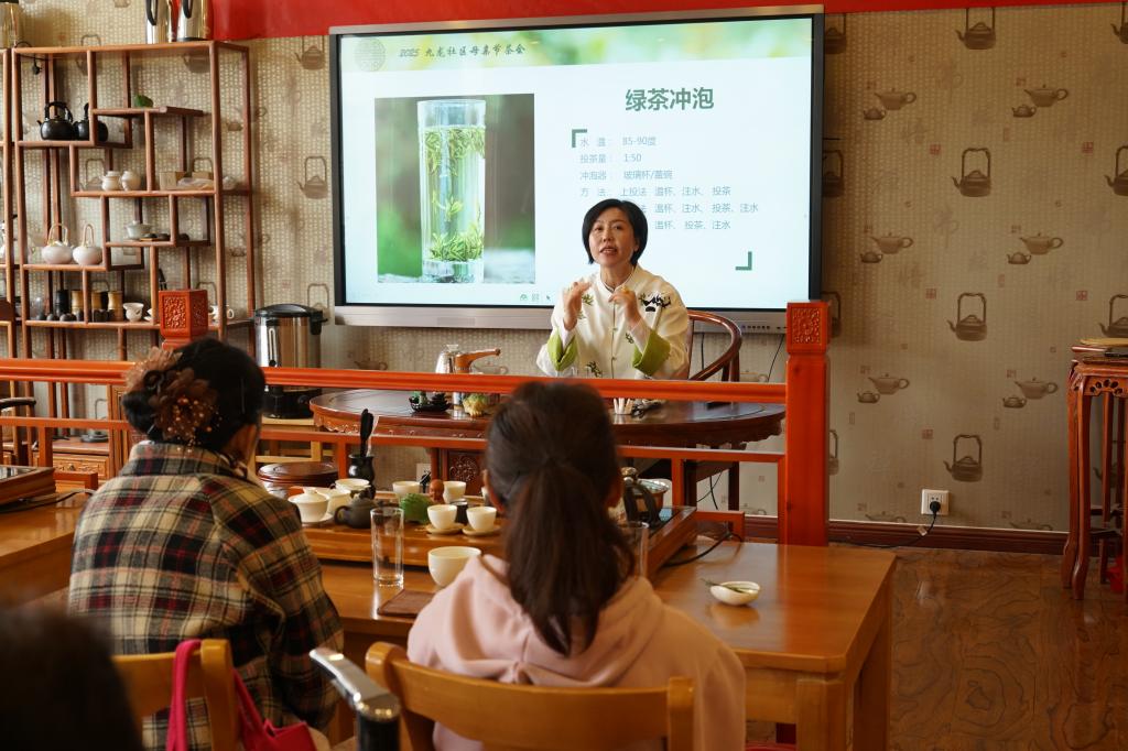 活動伊始,豐寧老年開放大學資深茶藝講師李金鑫老師向居民們介紹了茶的起源、種類、功效等基礎知識。從清香淡雅的綠茶到醇厚濃郁的紅茶,從工藝繁復的烏龍茶到溫潤養(yǎng)生的黑茶,深入淺出的講解讓大家對茶文化有了全新認識。