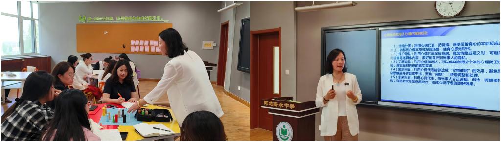 在技術(shù)研討環(huán)節(jié),衡水開放大學(xué)名師工作室負(fù)責(zé)人魏珊老師講授“心偶療愈技術(shù)”,通過理論講授和互動(dòng)體驗(yàn),向咨詢師團(tuán)隊(duì)展示了該技術(shù)在青少年心理疏導(dǎo)中的創(chuàng)新應(yīng)用。雙方教師圍繞教育技術(shù)革新展開深入討論,并達(dá)成后續(xù)定期互訪交流的共識。