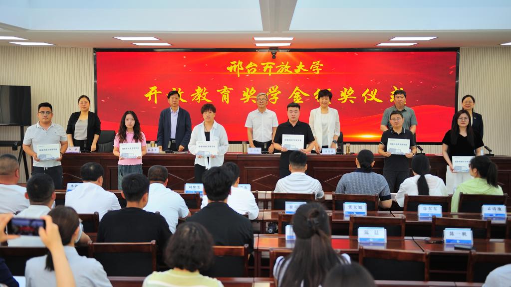 5月28日上午,邢臺開放大學舉行開放教育獎學金頒發儀式,為78名獲國家開放大學獎學金的學生頒發了獎金。儀式由校長劉彥君主持,黨委書記宗召偉出席儀式并講話,校領導霍秀申、梁桂軍、孫華、楊密婷和全體班主任老師以及獎學金獲得者代表共計70余人參加了儀式。