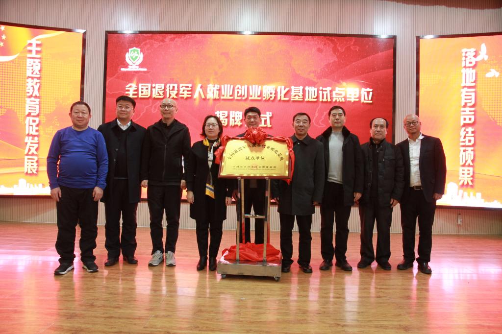 最后由唐山市教育局局長劉紹輝、中國技術創業協會孵化聯盟秘書長王曉利為全國退役軍人就業創業孵化基地試點單位揭牌。