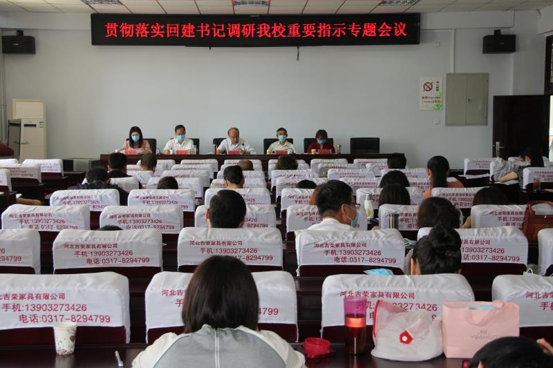 會上,張家口電大校長付德清同志介紹了回建書記察看教學設施情況,詳細傳達了回建書記6月5日到學校調研時的重要指示精神。黨委書記許桂友同志就貫徹落實回建書記重要指示精神做了重要講話,提出了三個方面貫徹落實措施: