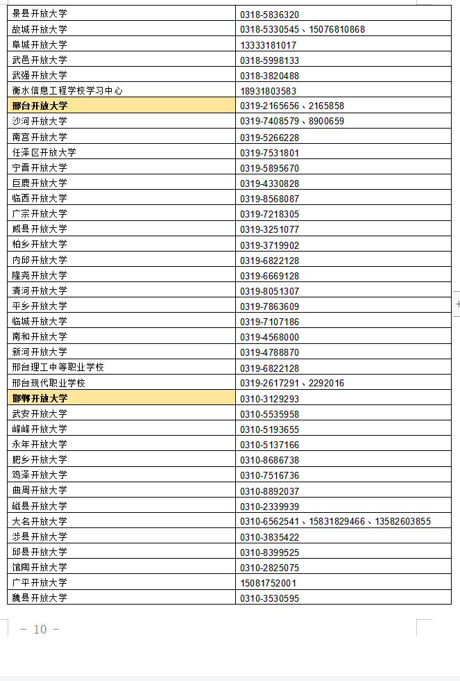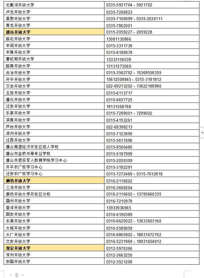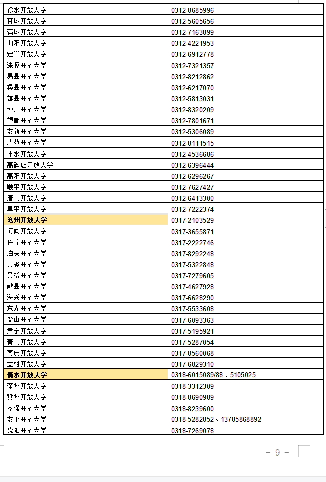 河北開放大學開放教育全省可招生開放大學或學習中心名單